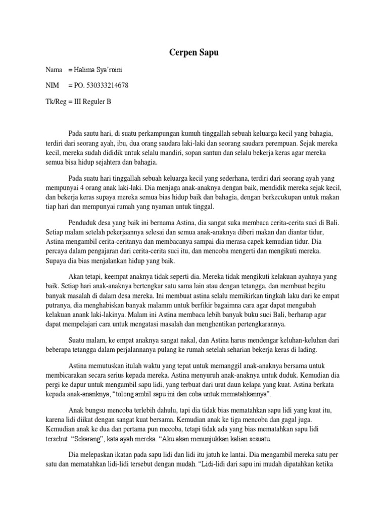 Aku merasa bahagia sekali, saat putri pertamaku di wisuda, kemudian dalam hitungan bulan dia bekerja lalu dipersunting oleh suaminya dan dibawa merantau ke kalimantan. Karena tidak didukung orang tua, aku terpaksa meminjam uang dari tetangga sebesar. Aku bercerita panjang lebar tentang keadaan keluarga di jakarta, juga aku ceritakan tentang vicky adik laki laki satu satunya yang juga membantu perusahaanku di jakarta. Sang istri hanya bisa menjadi ibu rumah tangga dengan sedikit pendidikan yang pernah ditempuhnya. Ini dia cerita pendek saya ingin ibu saya bahagia, dewa, kata dhruva. Itulah cerita pendek mengenai sebuah keluarga. Kebahagiaanku yang kedua, saat dua tahun kemudian putriku yang kedua diwisuda. Selain itu anda juga bisa menjadikan renungan ini sebagai bahan khotbah untuk ibadah di gereja. Terjemahan cerita pendek bahasa arab tentang keluargaku. Kemudian setelah itu ia tunjukkan cara praktiknya. Kalau toh pun dia katanya bahagia, hanyalah bahagia sesaat. Ia adalah seorang penggembala yang datang dari keluarga menengah ke bawah. Anda bisa mendapatkan sebuah cerita yang menarik mengenai gambaran pulau kiluan dan destinasi wisata yang lainnya.